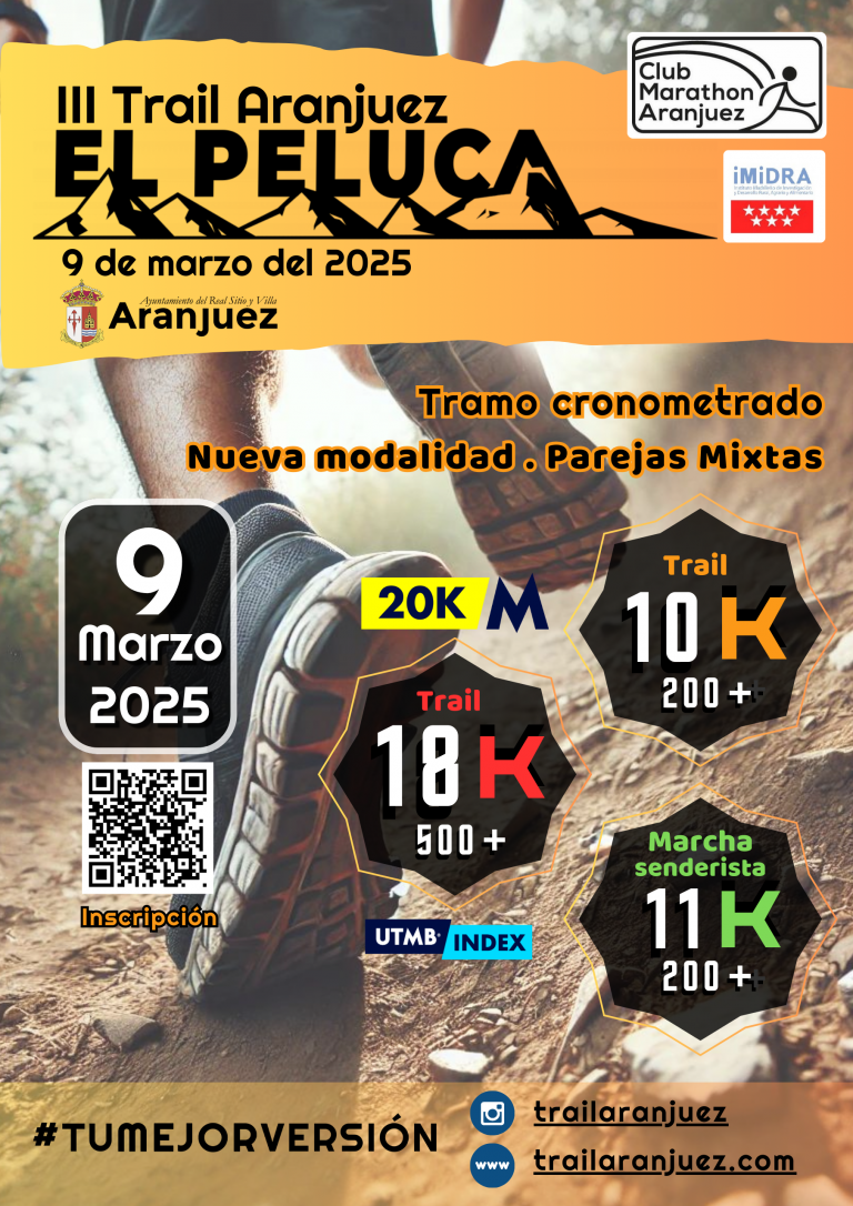 La tercera edición del Aranjuez Trail El Peluca, celebrada el domingo 9 de marzo de 2025 en el privilegiado entorno natural del sur de Aranjuez, consolidó esta prueba como una cita imprescindible en el calendario de carreras de montaña de la región. Organizada por el Club Marathon Aranjuez con el respaldo del Ayuntamiento de Aranjuez, IMIDRA, Protección Civil, Policía Local y la Consejería de Medio Ambiente, Agricultura e Interior de la Comunidad de Madrid, la carrera combinó exigencia física con accesibilidad técnica en dos recorridos circulares diseñados íntegramente dentro del municipio, superando los 600 metros de altitud en cerros y mesetas.